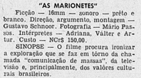 Argumento, montagem: Gustavo Schnoor Fotografia: Mário Passos Intérpretes: Adriana, Válter e Artur