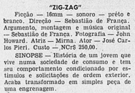 Argumento, montagem e música original: Sebastião França. Fotografia - John Howard Atriz: Mirna Ator: José Carlos Pieri